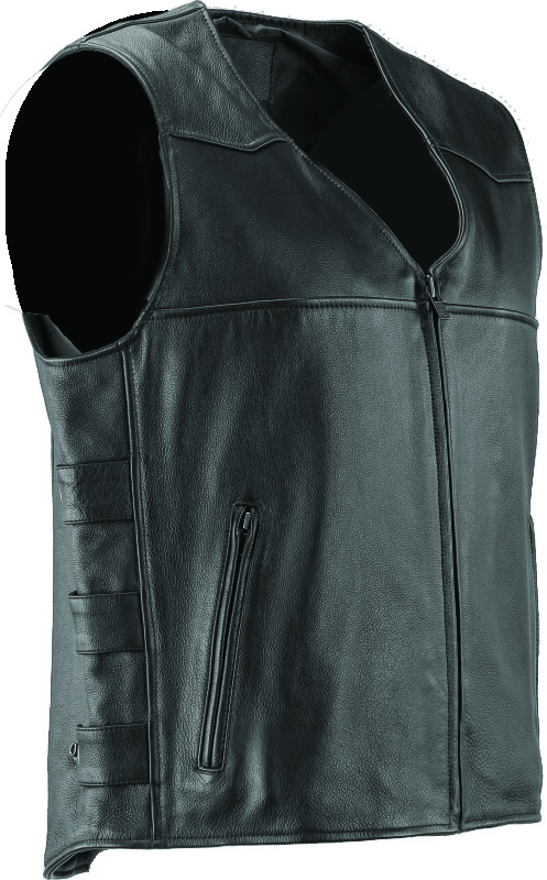 The Kuryakyn Plains Leather Vest in black (size small) offers a classic, fully-lined design crafted from genuine leather for long-lasting durability and comfort. This men’s vest features snap waist adjusters for a customizable fit and includes a variety of functional storage pockets for convenience. Ideal for riders seeking both style and utility, the vest is finished in sleek black leather to complement any riding gear. Brand: Kuryakyn.
