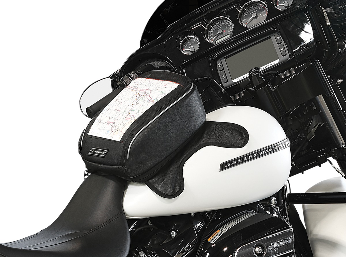 The dual-function Kuryakyn Trke 7L Dry Tank Bag doubles as a backpack to safeguard small essential items in any environment, whether strapped to you or your vehicle. Features include durable, fully welded double-coated TPU construction, submersible and lockable zippers, and a clear, touchscreen-friendly waterproof pouch for convenient GPS or map referencing. A high-strength magnetic base coupled with an included mounting strap kit and multiple attachment points offers worry-free use on a variety of motorcycles or offroad vehicles. Also includes breathable padded shoulder straps.