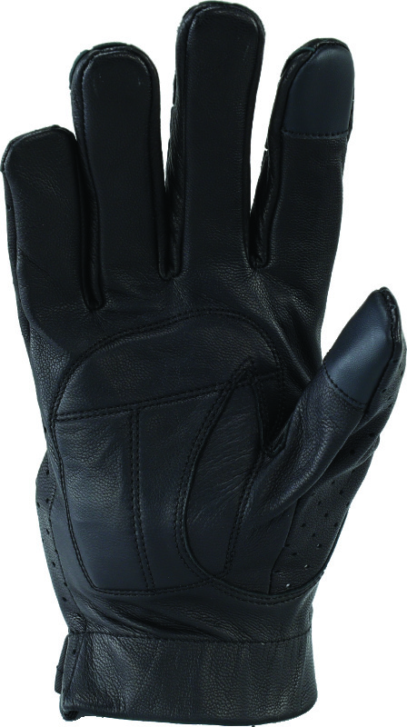 Genuine all-leather gloves with perforated leather on the back and Comfort-Gel Palm for enhanced comfort and nerve protection on long rides. Designed by Kuryakyn Leather by River Road, these Tucson Leather Perforated Gloves offer durability and breathability for riders. Color: Black. Size: Small.