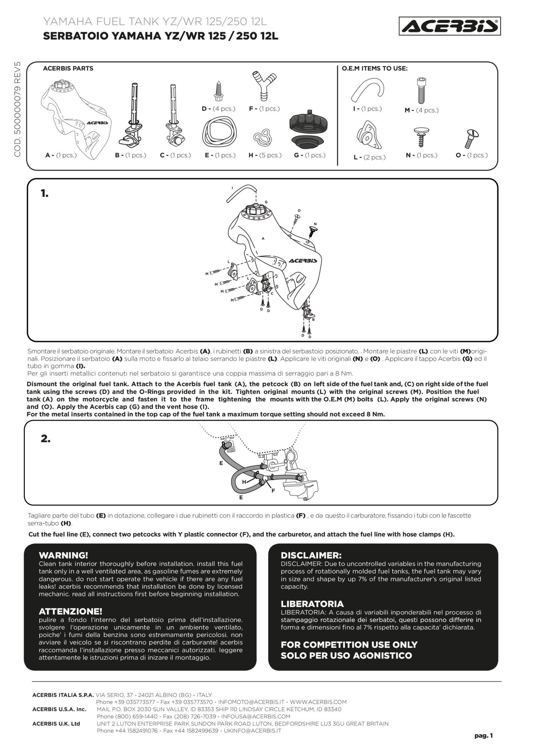 - Caps, applicable mount kits, fuel lines, petcocks and Y-fittings per application included as needed