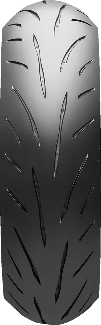 The Bridgestone Battlax Hypersport S23R Tire (180/55ZR17 M/C 73W, Tubeless) is engineered for top-tier hypersport performance. Featuring outstanding stability at high speeds from tuned MS Belt construction, the S23R offers excellent wet and dry grip at high lean angles thanks to its advanced shoulder compound. New front and rear tread patterns ensure superb handling and enhanced dry grip. The contact patch is optimized through Ultimat-Eye™ analysis for increased precision and control. Designed as a next-generation upgrade over the Battlax Hypersport S22, this tire delivers improved cornering stability and wear for more exhilarating miles on the road. Ideal for sport and street motorcycles requiring a high-performance rear tire.