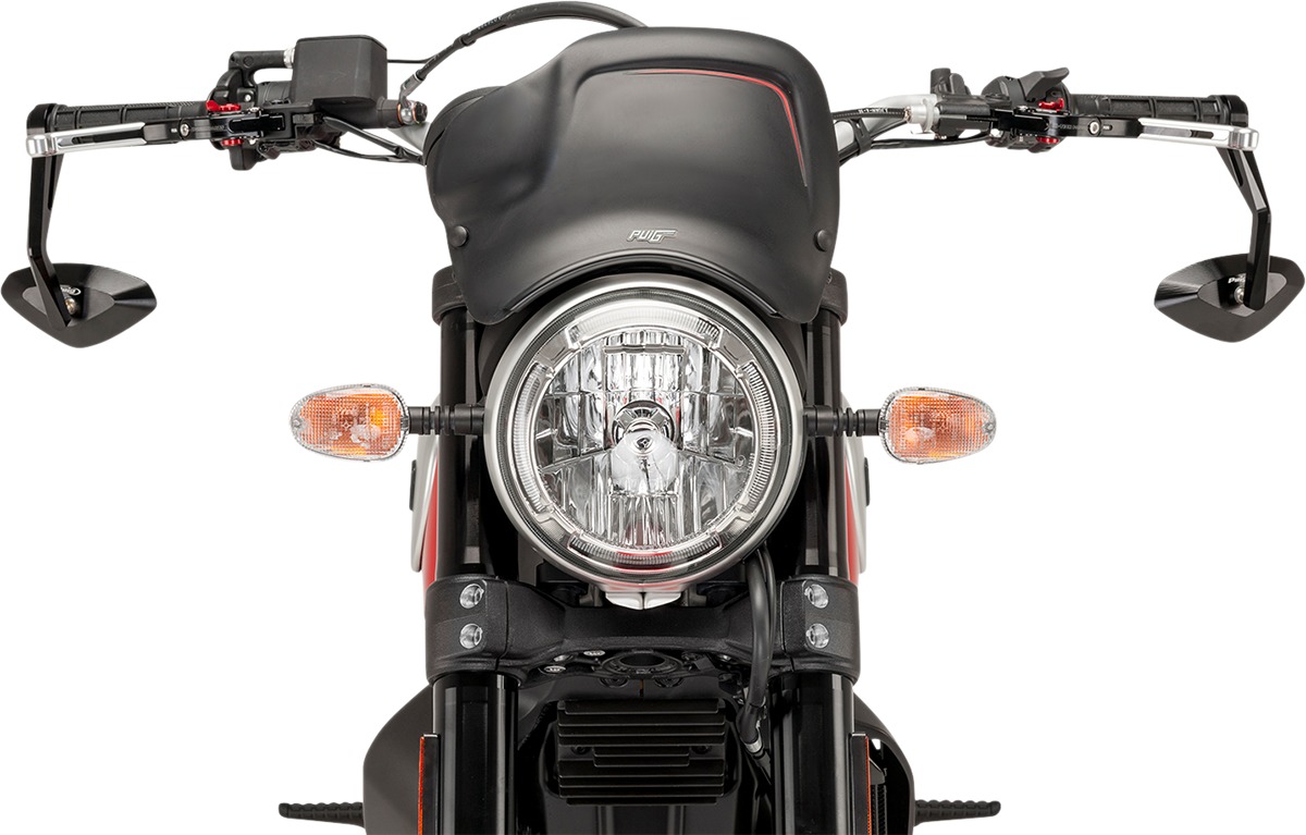 Mirror head and stem forged from billet aluminum. Heavy-duty Stainless Steel internal pivot hardware. Great rear vision. Standard and metric mounting hardware included. Lazer engraved Arlen Ness logo.