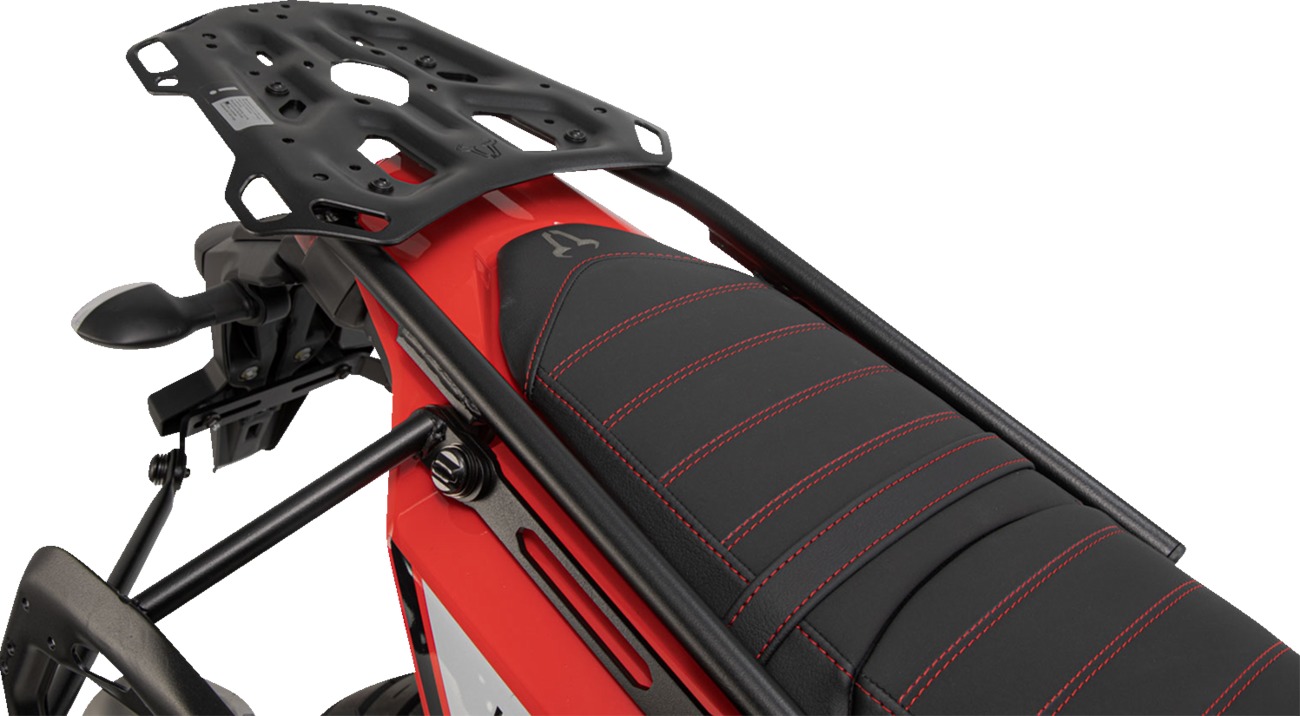 The SW-MOTECH Adventure-Rack Luggage Rack is engineered for maximum durability, making it perfect for long tours and off-road rides. Designed specifically for the Yamaha Tenere 700, this rack features exclusive manufacturing processes and an optimized shape for increased stability. Its durability has been rigorously tested in both lab and real-world off-road conditions to withstand vibrations, impacts, and heavy loads. The rack includes multiple functional mounting holes for TRAX top cases and SysBag (adapter plates and kits sold separately), and is compatible with top cases from Givi, Krauser, and Shad (adapter kits required). Easy to install on original attachment points, the rack offers numerous large lashing eyes for secure luggage attachment and a generous contact surface (Front Width: 32.9 cm, Rear Width: 22.5 cm, Length: 30.3 cm).