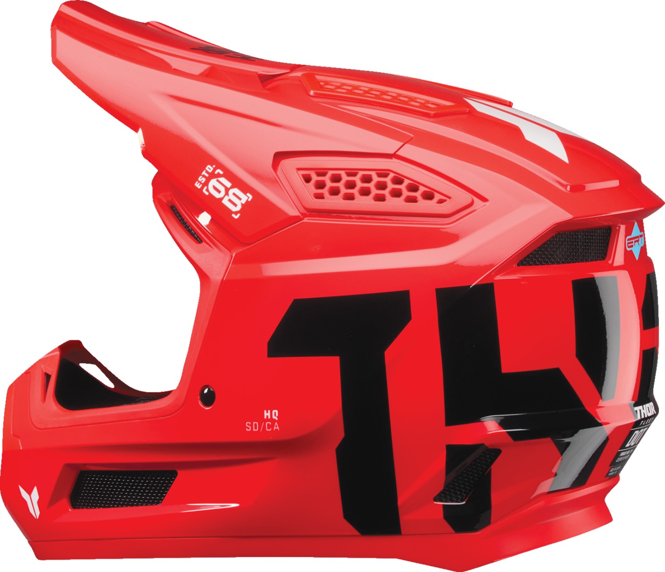 The Thor Fleet Forge Helmet is designed for off-road riders seeking premium protection and comfort. Featuring a strong and durable PC/ABS shell, this helmet incorporates Energy Reduction Technology (ERT) to help mitigate linear and rotational impact energy. The dual-density EPS impact liner ensures enhanced safety, while 13 intake and exhaust vent ports provide excellent airflow. Additional features include a flexible ABS visor with a 4-point snap-retention system, a removable and washable comfort liner and cheek pads, and a secure nylon chinstrap with a stainless steel D-ring retention system. Meets ECE R22.06 and DOT FMVSS-218 standards for safety compliance.