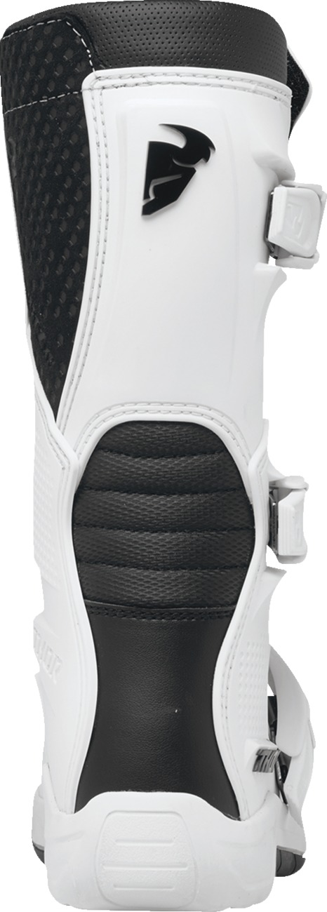 The Thor Youth Blitz XR Boots are designed for young riders who demand durability and comfort. These boots feature a pre-curved injection molded shin plate, fully synthetic calf overlays for premium durability and grip, and an injection molded medial abrasion plate with integrated shift protection. The uni-directional outsole includes a steel shank insert for enhanced support, while the metal toe cap reinforces outsole strength. With four fully adjustable straps for a custom fit, injection molded positive lock buckles, and a breathable mesh liner, these boots ensure maximum performance. Tested and certified to EN 13634:2017 safety standards.