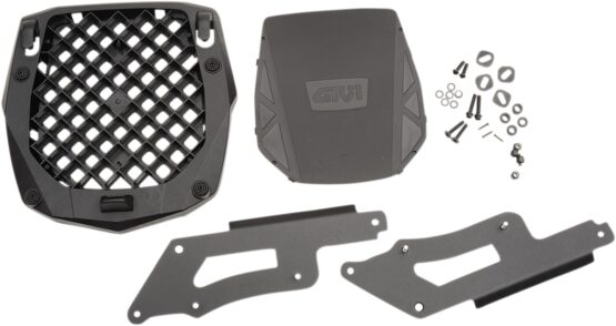 This mounting hardware kit is designed to install a MONOKEY top case on the 2008-2016 Kawasaki KLR650. It can be used alongside or as a replacement for existing luggage racks. The V35 and V37 Trekker side cases are constructed from polypropylene and aluminum, offering durability and a modern aesthetic. They feature a secure MONOKEY SIDE 4-point coupling system compatible with PLX/KLX and PLXR/KLXR frames. Each case has a 37-liter capacity and can accommodate most modular helmets. The ergonomic design allows for better passenger comfort by providing space for leg positioning. Additional details include a brushed aluminum or matte black finish, carbon-look inserts, and an embossed GIVI logo. The cases are sold as a pair.