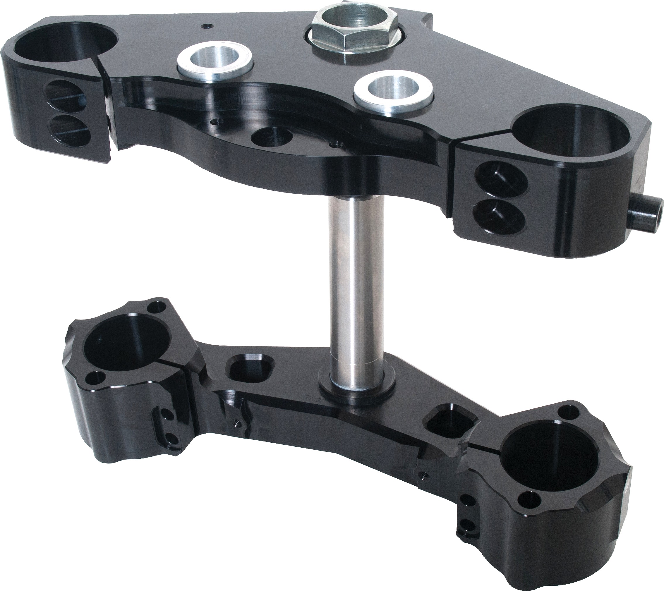 The XTRIG ROCS Tech Triple Clamps utilize the Revolutionary Opposed Clamping System (ROCS), which secures the upper fork tube from opposite directions. This design reduces inner tube distortion, enhances front-end stability, and allows the fork to flex more consistently for improved front wheel traction. The split clamp design ensures a precise alignment of the fork tubes and maintains a secure clamping area even under load. These triple clamps are CNC-machined from high-quality aluminum, making them lightweight while maintaining durability. The unique clamping system eliminates unnecessary material between the bolts, further reducing weight. The system is specifically tuned for optimal flexibility of the fork and chassis, providing better response and handling. The included Progressive Handlebar Dampening System (PHDS) handlebar mounts allow handlebars to be positioned in 12 different settings and come with Yellow (medium) elastomers (P/N 770073) for vibration reduction and improved rider comfort. The clamps also feature a standard offset with a pre-pressed steering shaft and pre-mounted steering head bearing. Additionally, 10mm spacers are included for further adjustability.