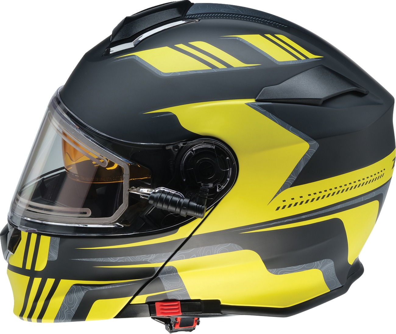 The Z1R Solaris First Tracks Modular Snow Helmet is designed for snow riding enthusiasts, combining comfort and functionality. It features an injection-molded polycarbonate shell for durability and includes both a dual-pane anti-fog electric shield and a standard shield. The micrometric helmet strap ensures a secure fit, while the amber drop-down sun visor can be activated using a side lever. Closable chin and top vents, along with a rear exhaust vent, allow for optimal airflow. The fully removable polyester moisture-wicking liner and cheek pads enhance comfort, and the helmet comes with a removable breath box and chin curtain for added protection. This helmet meets DOT FMVSS-218 standards for safety.