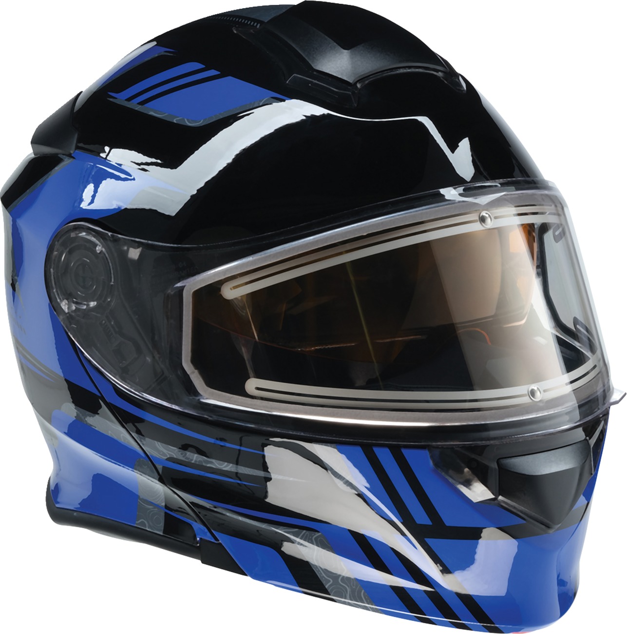 The Z1R Solaris First Tracks Modular Snow Electric Helmet is designed for extreme winter conditions. Featuring an injection-molded polycarbonate shell, this helmet includes a dual-pane anti-fog electric shield and a standard shield. The micrometric helmet strap ensures a secure fit, while the amber drop-down sun visor is easily activated with a side lever. Adjustable chin and top vents, along with a rear exhaust vent, provide excellent airflow. The fully removable moisture-wicking liner and cheek pads enhance comfort. Additional features include a removable breath box and chin curtain. Meets DOT FMVSS-218 standards.